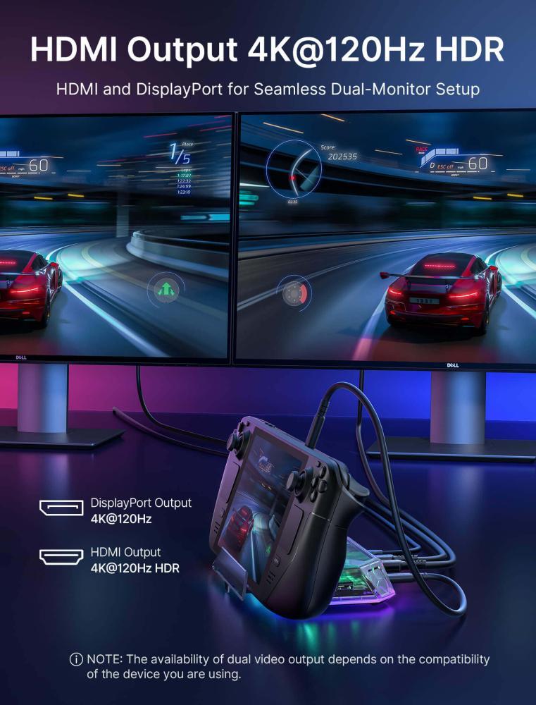 يدعم مخرجي HDMI وDisplayPort لتقديم جودة فيديو رائعة بدقة 4K ومعدل تحديث 120Hz، مما يعزز تجربة الألعاب والترفيه.